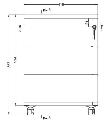 Pour une sécurité optimale le caisson est doté d'un système de fermeture centralisée et est livré avec 2 clés pliables. De plus, afin d'éviter tout risque de basculement, celui-ci dispose d'une ouverture sélective ne permettant l'ouverture que d'un tiroir à la fois, et d'une 5ème roulette au niveau du tiroir pour dossiers suspendus afin de garantir la stabilité du caisson.
