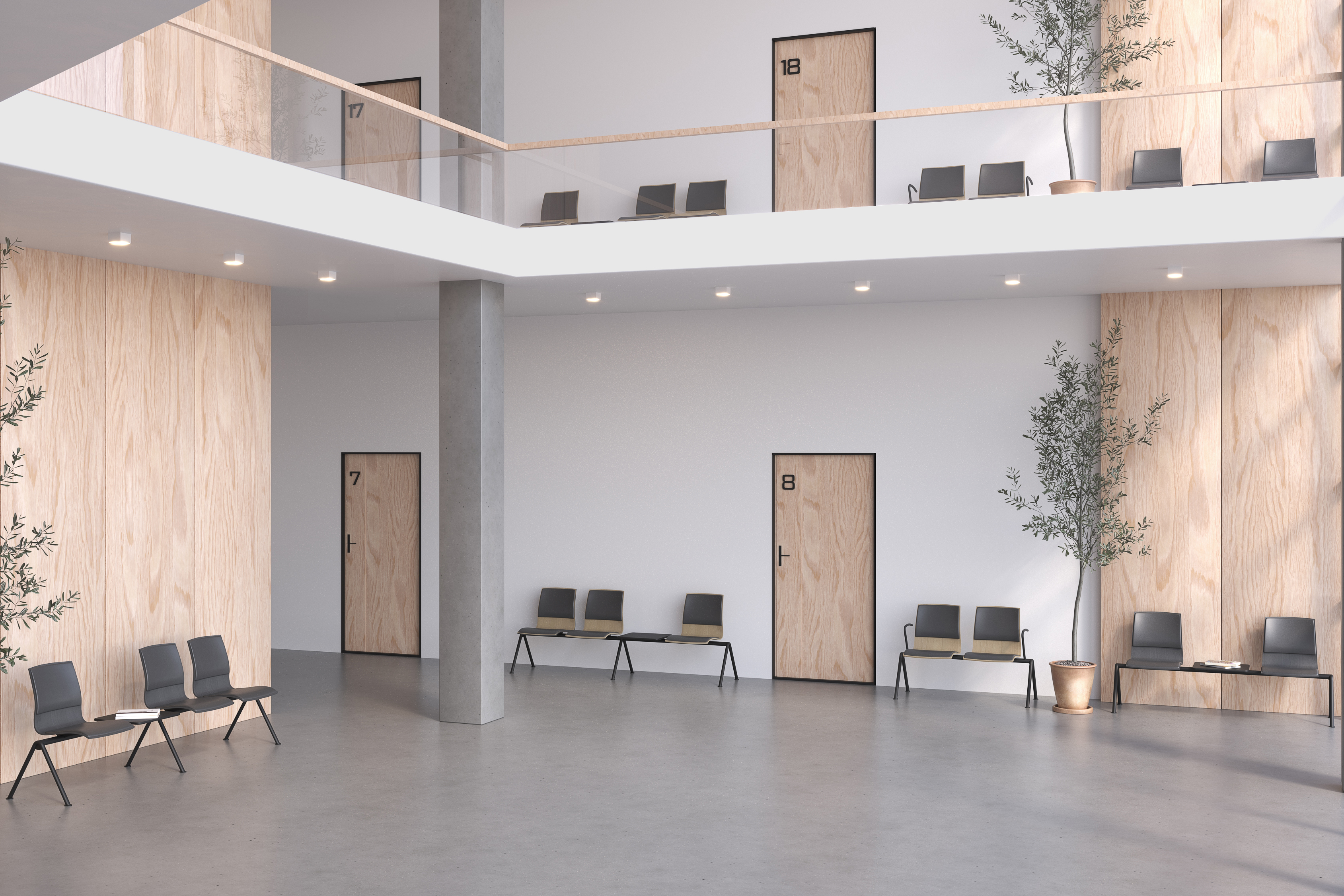 Siège sur poutre 4 places Trio Evolution - coque multipli hêtre - piétement époxy
