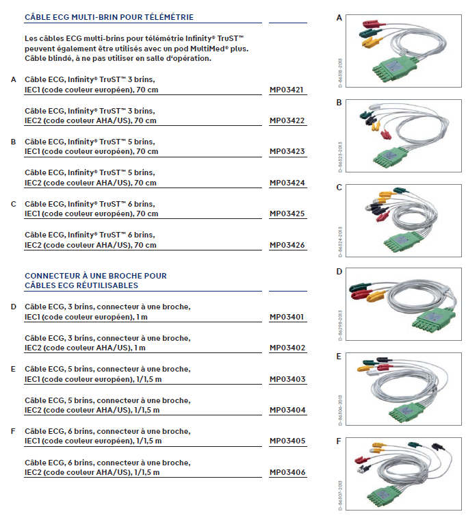 Câble ECG 6-dériv - IEC - compatible avec le moniteur VISTA 300 - longueur de 1.5 m