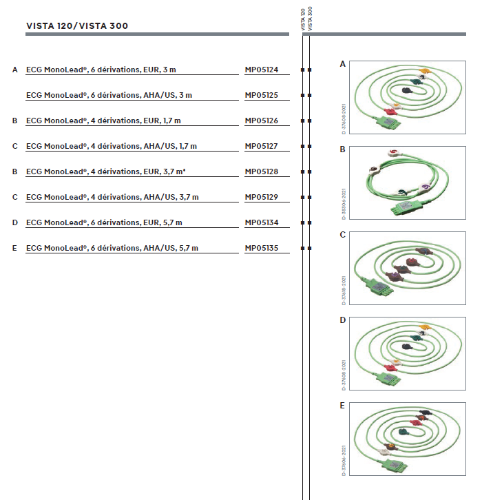 Câble ECG Monolead 6-dériv - compatible avec le moniteur VISTA 300 - longueur de 5.7 m