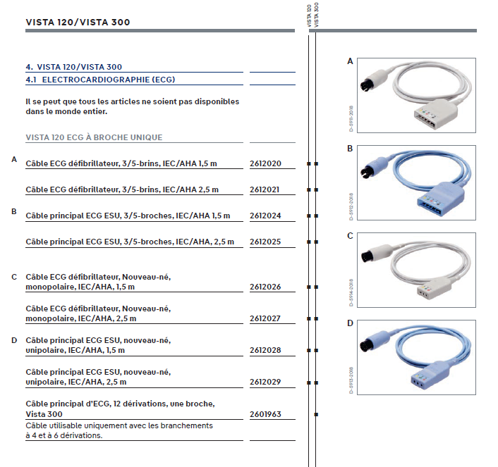 Câble principal pour câble ECG 3 dérivations, néonatal, pour le Bloc opératoire, Vista 300